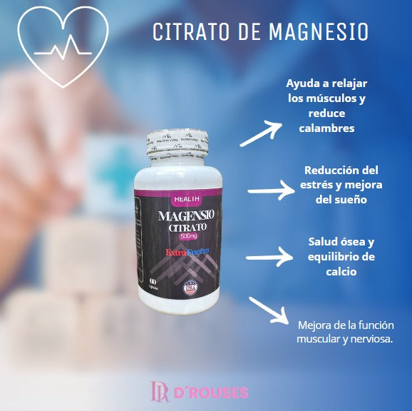 Cada cápsula contiene 500mg de magnesio en su forma de citrato, conocido por su excelente absorción en el cuerpo para aprovechar al máximo sus beneficios.